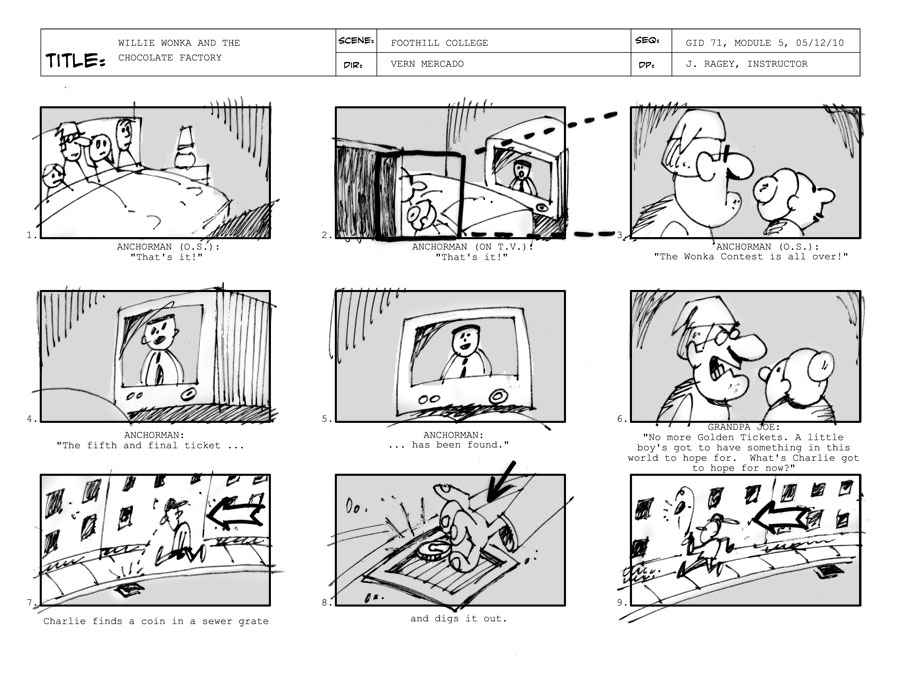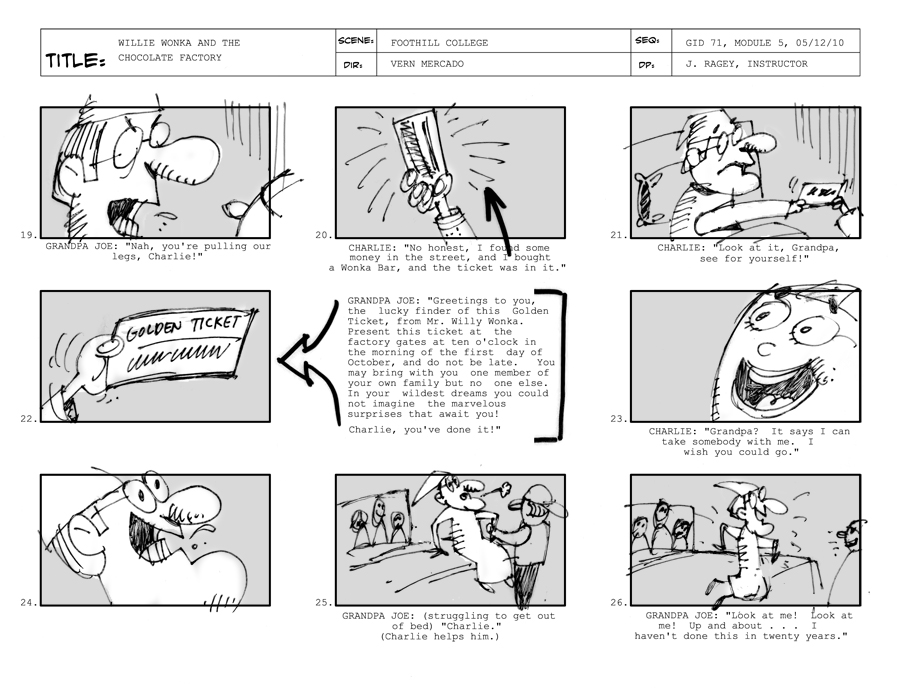 I’ve been working on some storyboards for a class I’ve been taking “online”. If you stretch your imagination, it kinda relates to “slither” as Charlie finds the golden ticket. To seem more, here’s the link to my online blog that I’ve been uploading my assignments: click here.